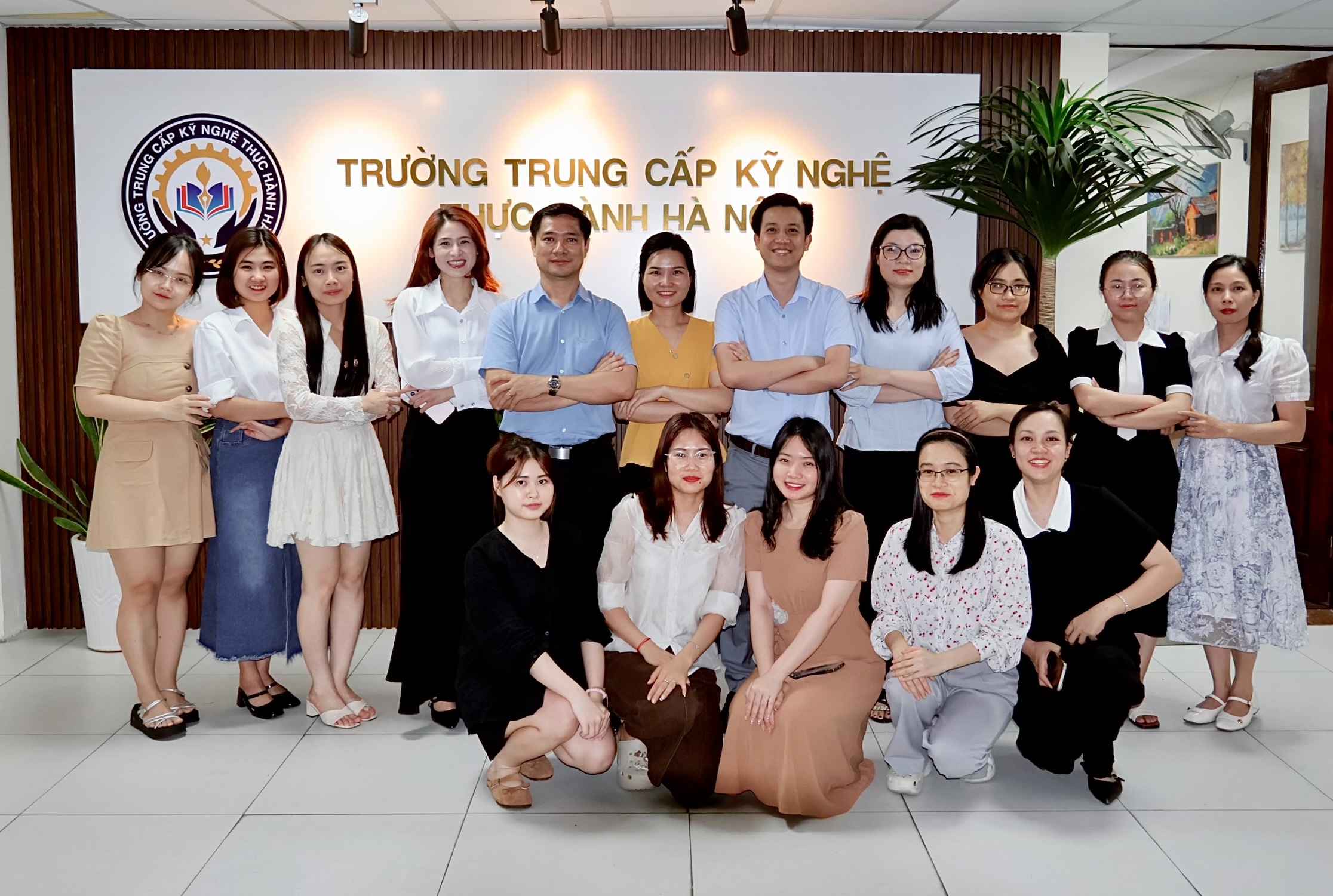 Representatives of HUB leadership took a commemorative photo with the leadership and staff of Hanoi Vocational College of Applied Arts, at the Hanoi campus.